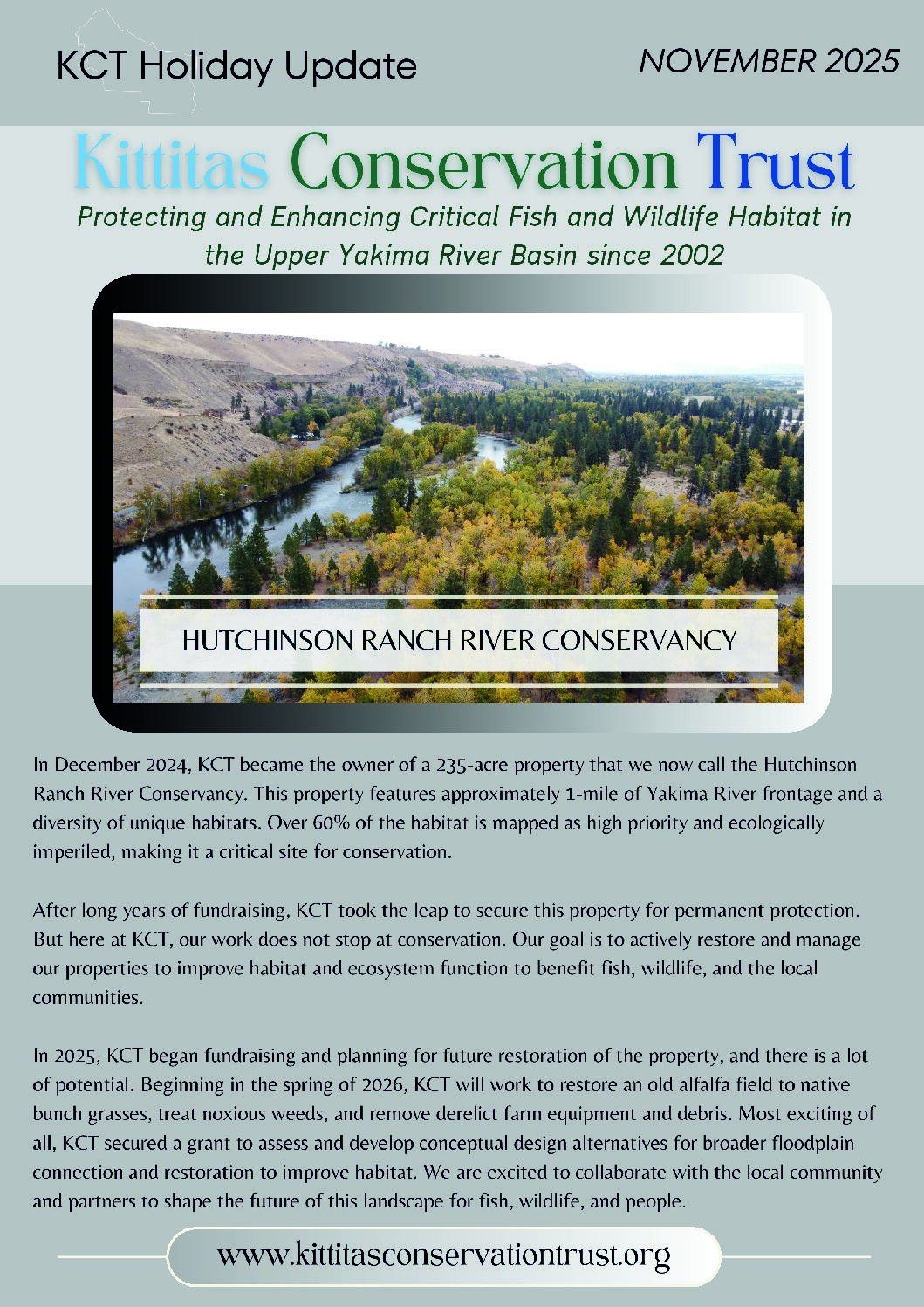 If our forests, rivers, wildlife and fish could talk, what would they say? Our conservation and habitat restoration work have given us a picture of what that might be. We give their important stories a platform through our blog and videos. We also share stories about the work we are doing to ensure critical habitat in Kittitas County remains accessible and healthy for wildlife, fish, and people.